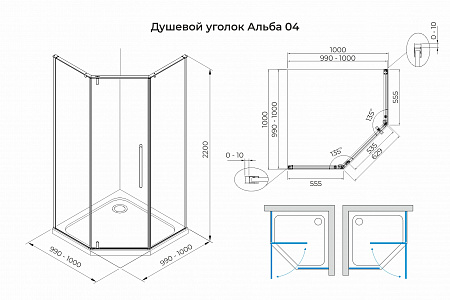 Душевой уголок распашной Terminus Альба 04 1000х1000х2200  трапеция чёрный Бор - фото 1 Душевой уголок распашной Terminus Альба 04 1000х1000х2200  трапеция чёрный Бор - фото 2 Душевой уголок распашной Terminus Альба 04 1000х1000х2200  трапеция чёрный Бор - фото 3
