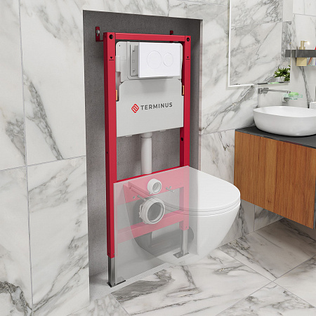 Пневматическая система инсталляции для подвесного унитаза 500х1125 (4 в 1 с клавишей смыва) Terminus